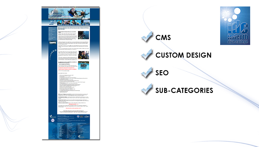 The Indepth Dive College is one of Thailand's premier dive instructor training facilities. On visiting the dive center you will notice nothing is left to chance, everything has its place. The same specification was demanded by resident PADI Course Director and owner Chris Owen of his website design and functionality. Chris continually adds relevant articles, items and pictures to this website as it climbs it's way up the search engine pages.