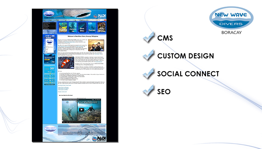 Boracay could not be more well represented than New Wave Divers web design. A fun, exciting, interesting and easy to navigate website, and all working on the Hammerhead CMS. You could easily forget your looking at the sharp end of the business stick!