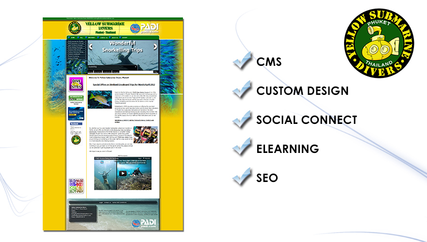 The Yellow Submarine Divers center in Phuket, Thailand is run by Hammerhead Technologies. This was and remains the testing ground for the Hammerhead CMS before it was released to the general market. Ever changing it now serves to demonstrate our latest functions and modules.